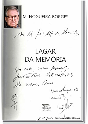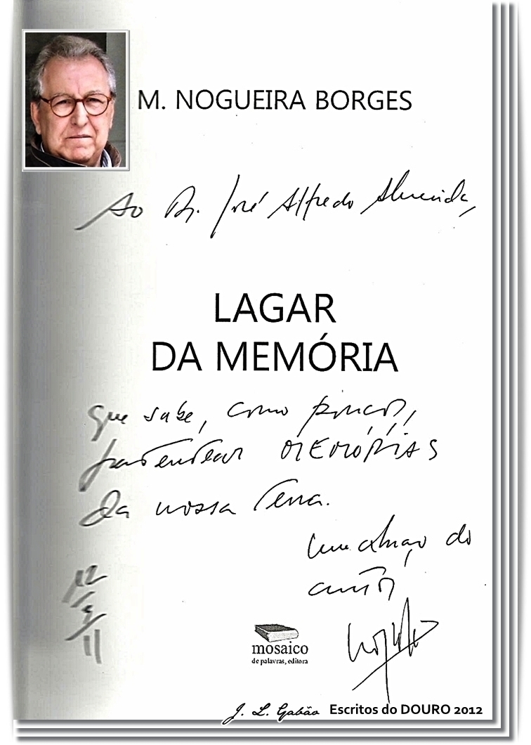 Guardo o seu livro Lagar da Memória que me enviou pelo correio, manuscrito numa das primeiras páginas com uma dedicatória elogiosa e, de certo modo, imerecida, mas que me honra e me deixa grato para sempre. Quando o Nogueira Borges gostava dos seus amigos, não se poupava em manifestar as suas atenções de estima, afectos e cordialidade.