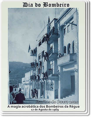 Os bombeiros da Régua não podiam ter escolhido melhor cenário para, no dia 17 de Agosto de 1969, realizarem um exercício de destreza, bravura, disciplina e até de admirável beleza: perfilados nas escadas de ganchos, montadas na fachada de um prédio de habitação, de três andares, apresentavam uma continência a um público que, na Avenida Sebastião Ramires, como então era conhecida, assistia deslumbrado ao espectáculo de magia acrobática e de perfeita sincronia de todos os movimentos.