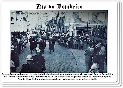 A iniciativa de se festejar um “Dia do Bombeiro” era inédita para a Régua. Os pormenores das comemorações do “Dia do Bombeiro” ficaram registados na primeira página do jornal “Vida por Vida”. Aparecem destacadas as actividades realizadas, a presença dos corpos de bombeiros do distrito de Vila Real, alguns de Viseu, Guarda, Bragança, Braga e Porto. A ilustrar o texto estão duas fotografias, uma das quais é a registou este histórico simulacro ataque ao fogo e de salvamento. Um outro aspecto do evento, era a concentração dos bombeiros, no Largo da Estação, seguido do desfile apeado e motorizado das corporações pelas principais ruas da vila da Régua, com cerca de 350 homens e mais de 30 viaturas, que também mereceu relevo. As individualidades reuniam-se num palanque montado em frente da “Casa do Douro”, à Rua dos Camilos, entre as quais se destacava Inspector de Incêndios da Zona Norte, Coronel Alexandre de Magalhães, acompanhado do Presidente da Câmara Municipal do Peso da Régua, Dr. Rui Machado, que receberam as honras das corporações em desfile. A população reguense interessou-se e não deixou de aplaudir e entusiasmar-se na passagem dos corpos de bombeiros, saudando-os com alegria e muita emoção.