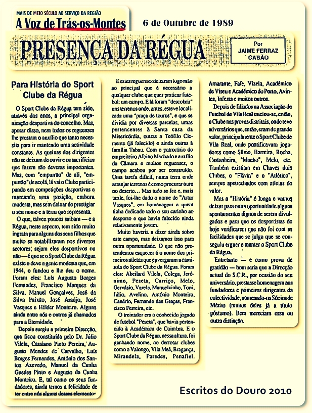 - Jaime Ferraz Rodrigues Gabão citado no portal do Sport Club da Régua - Aqui!